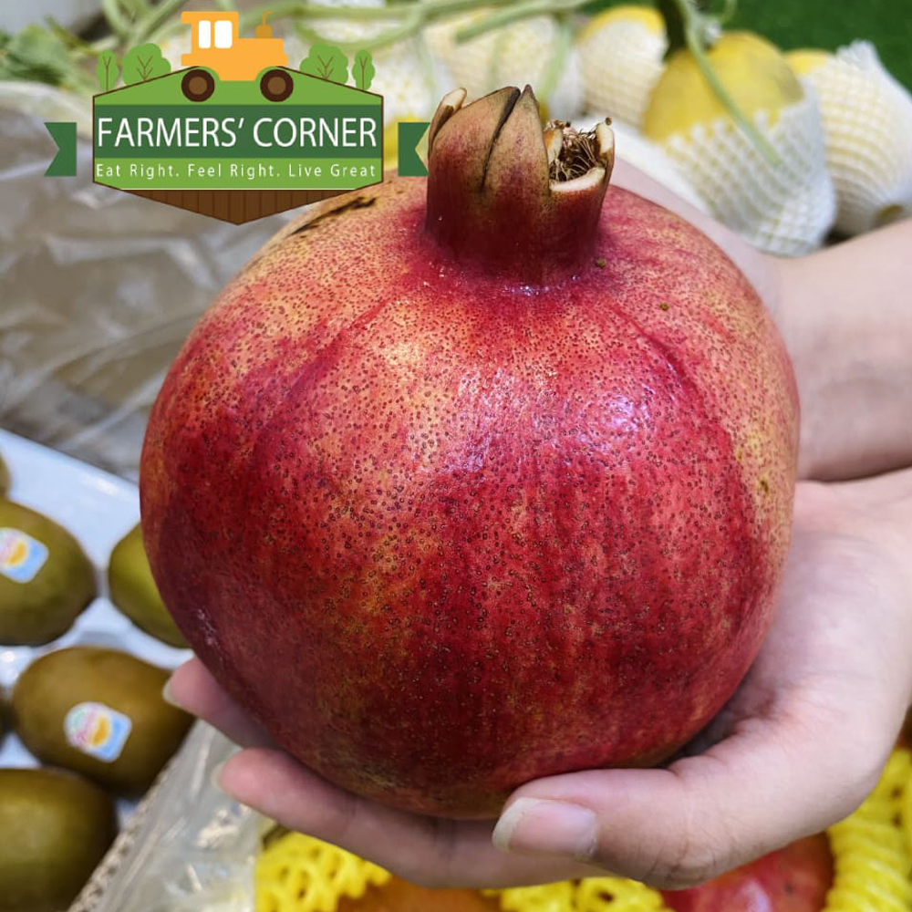 Lựu đỏ Peru S5 (size 5 trái/ thùng). Trái siêu to, hạt lựu có màu đỏ ruby bắt mắt, mọng nước và ngọt.